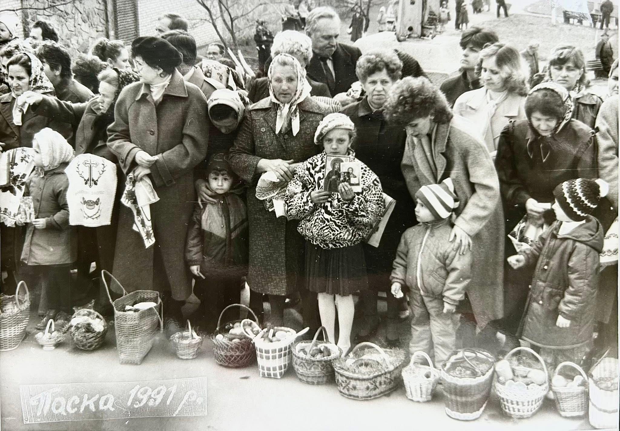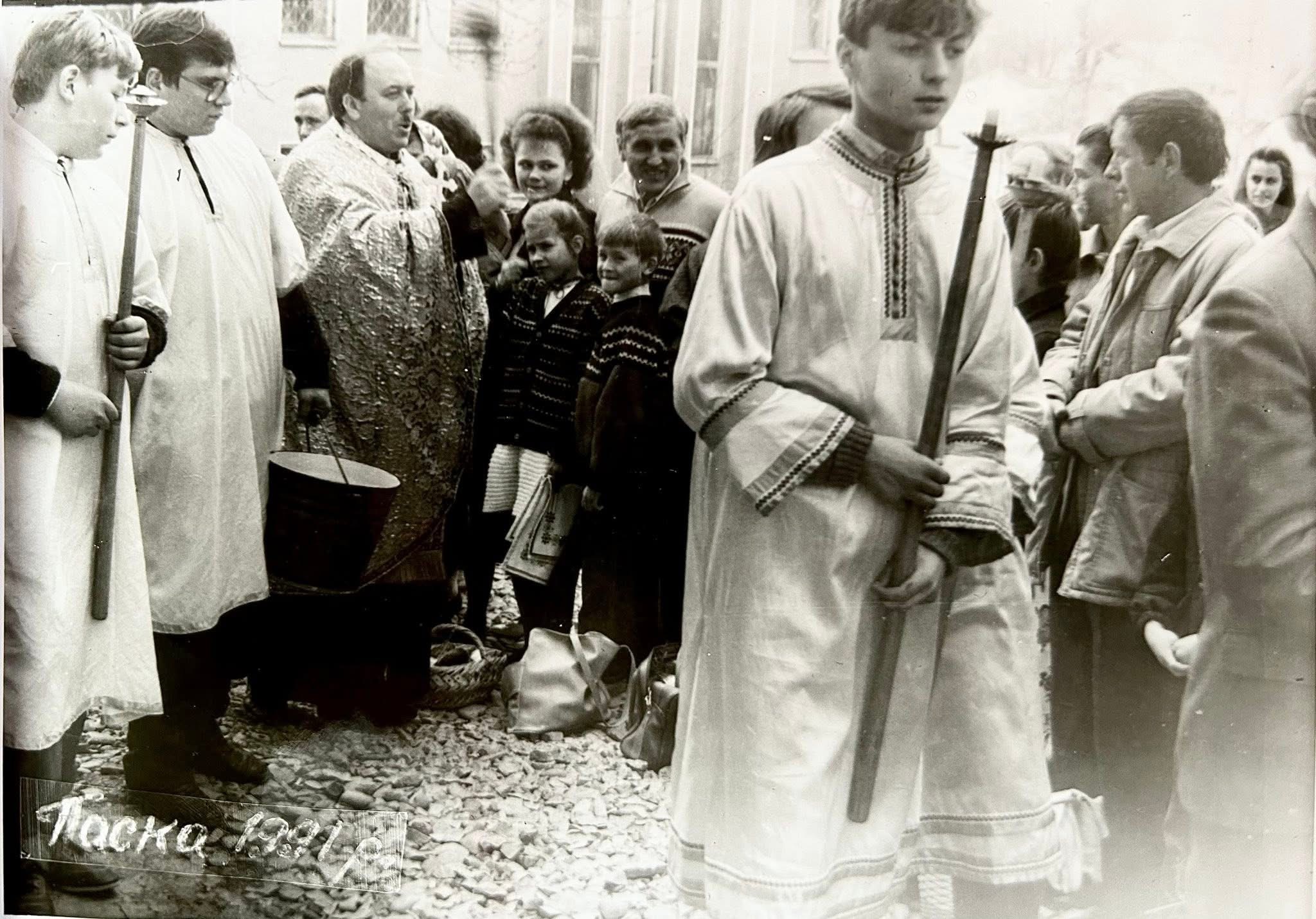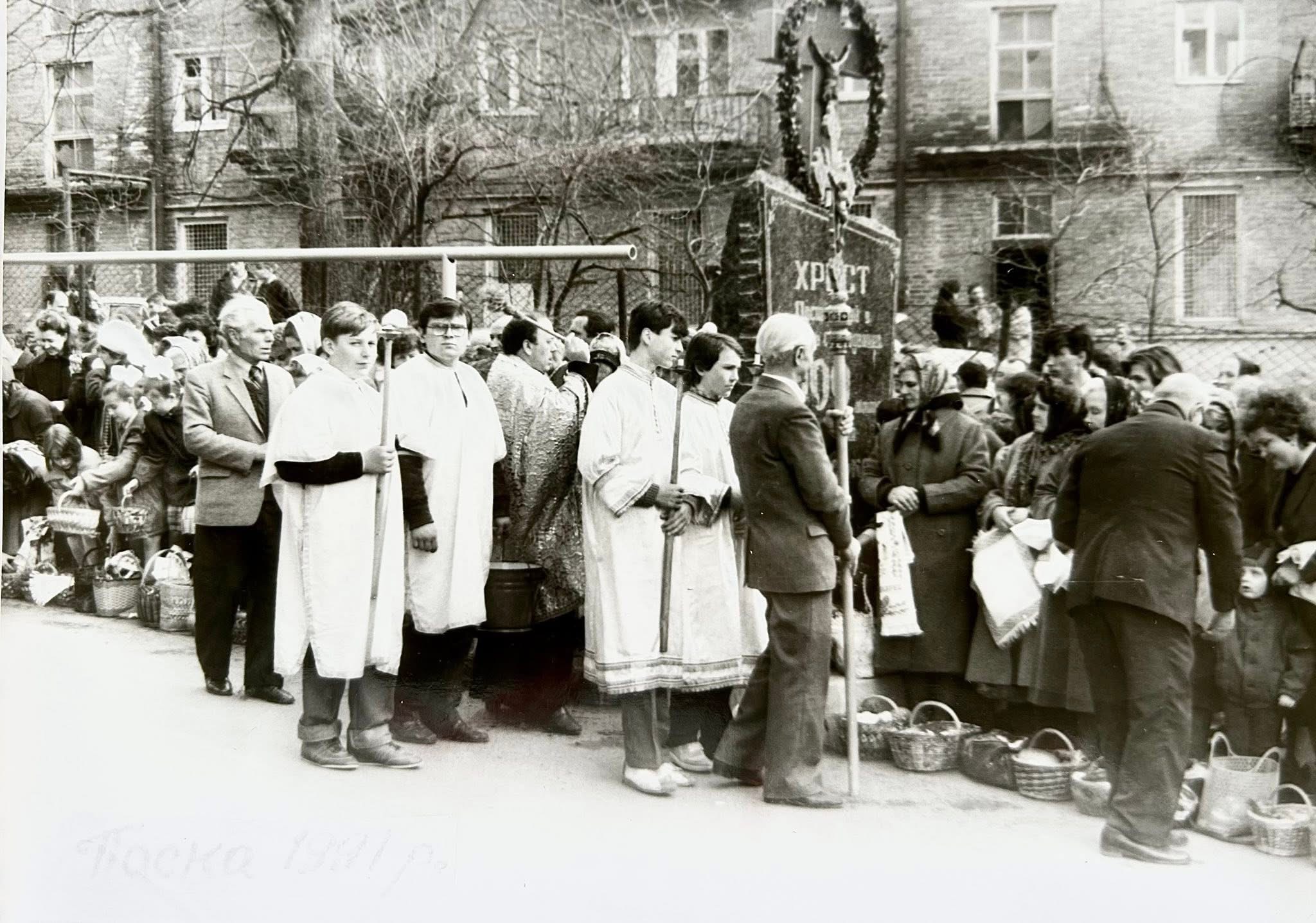 Калушанин Володимир Халупа розмістив раритетні фото святкування Воскресіння Христового, зазначивши, що 35 років тому – у 1991 році Великдень святкували 7 квітня.