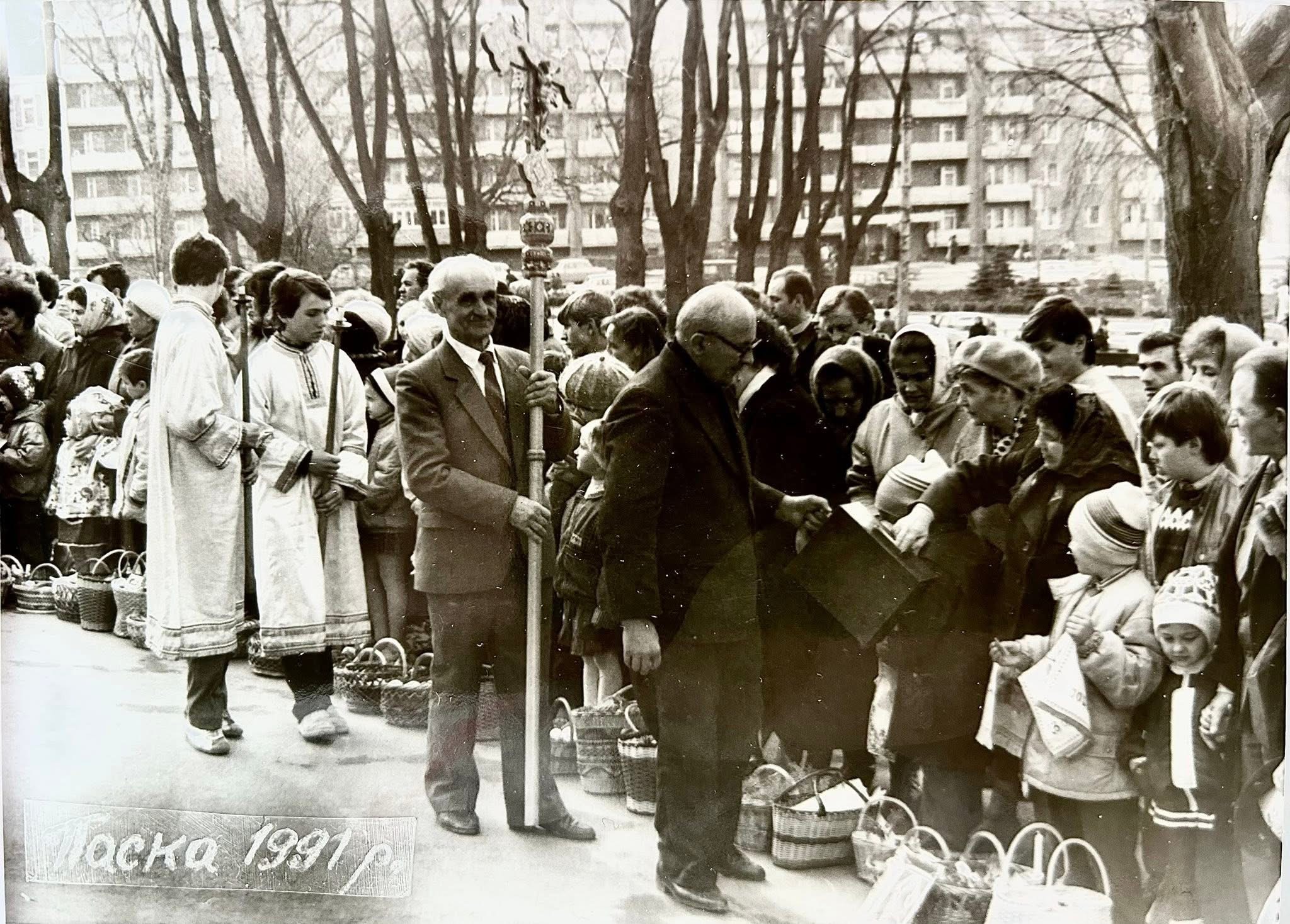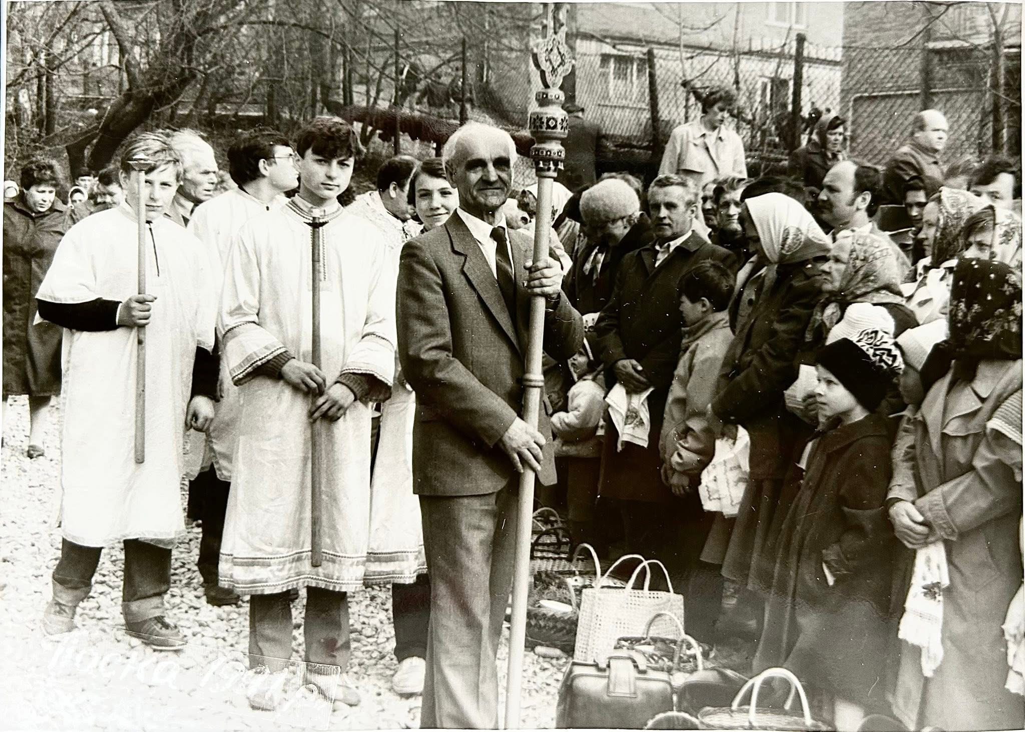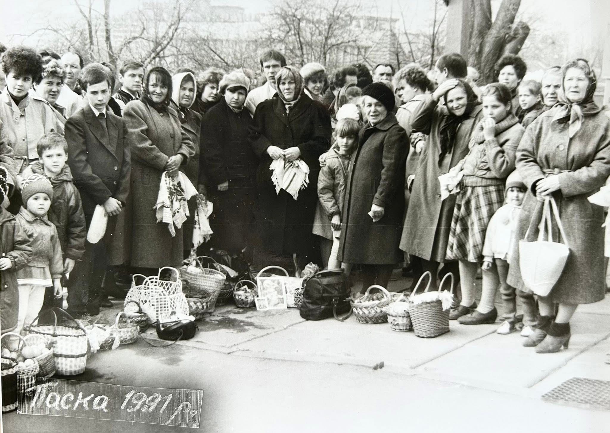 Калушанин Володимир Халупа розмістив раритетні фото святкування Воскресіння Христового, зазначивши, що 35 років тому – у 1991 році Великдень святкували 7 квітня.