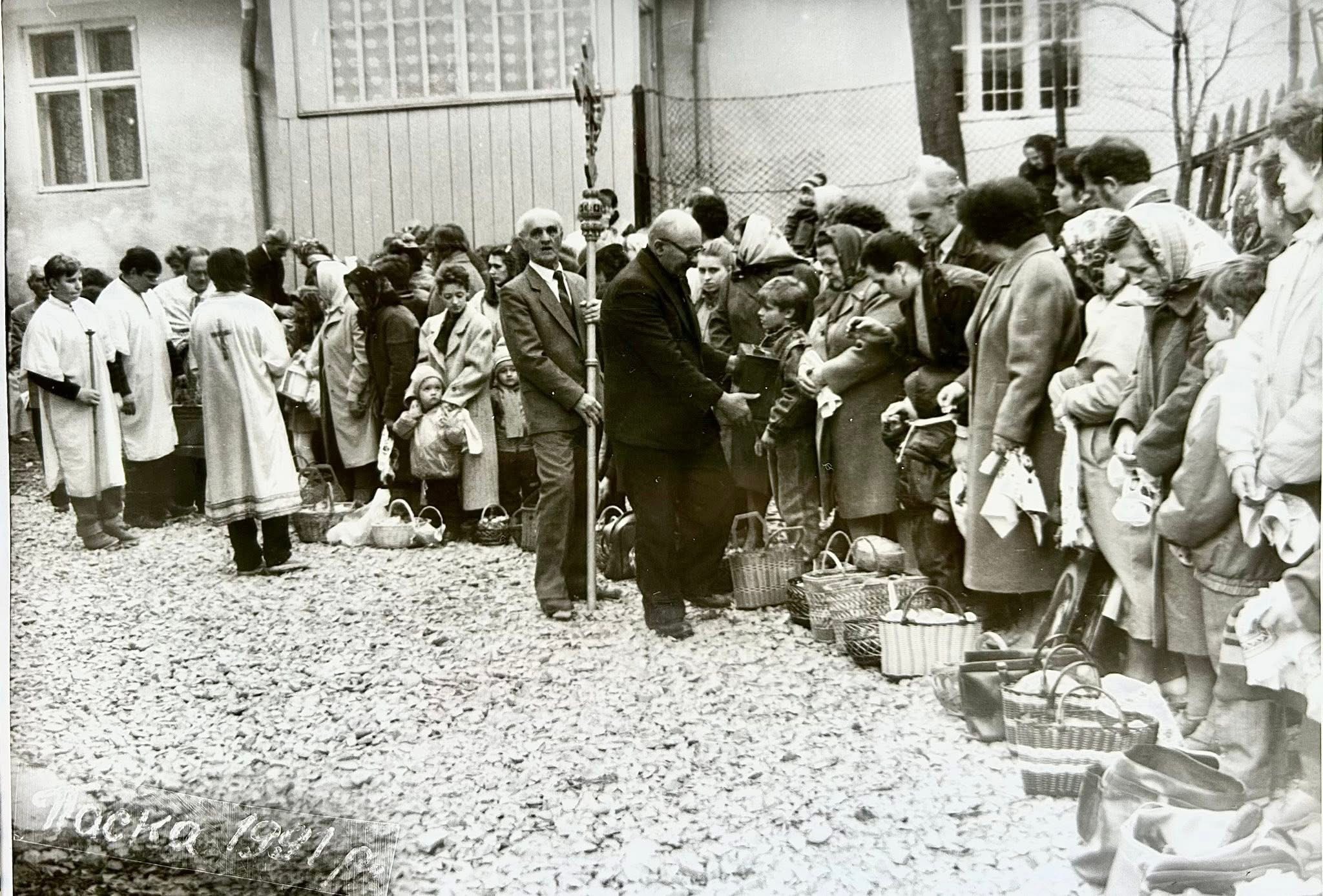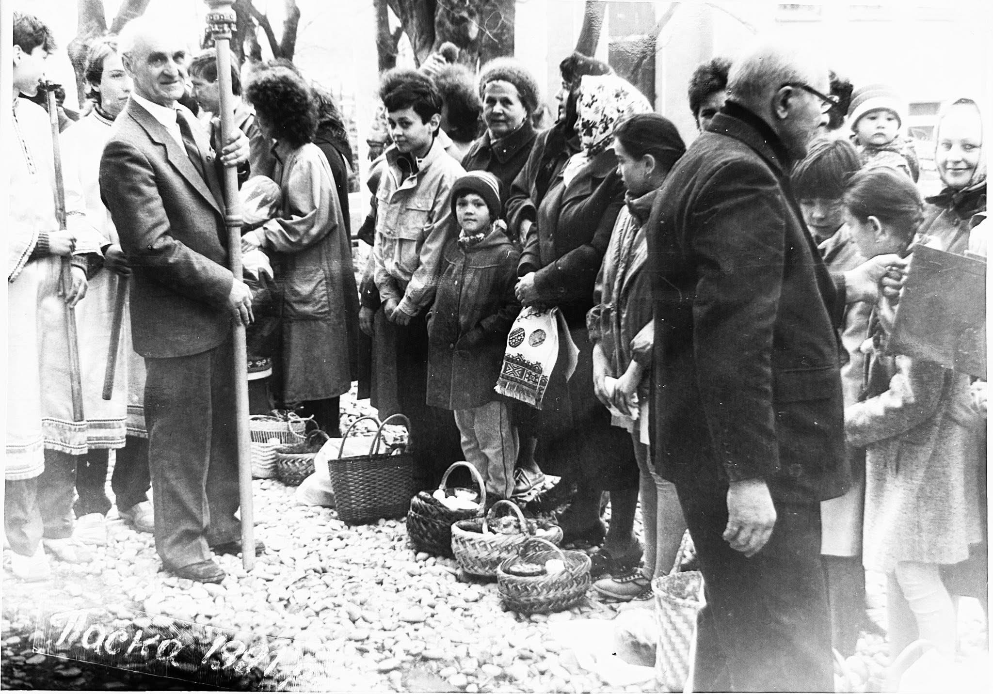 На світлинах, що зроблені у Калуші за декілька місяців до здобуття Україною незалежності, можемо побачити велику кількість калушан, які прийшли освятити великодні кошики. Освячення пасок, ковбаси, шинки, хрону і інших наїдків, які традиційно українці ставлять до кошика здійснював о. Михайло Бігун.