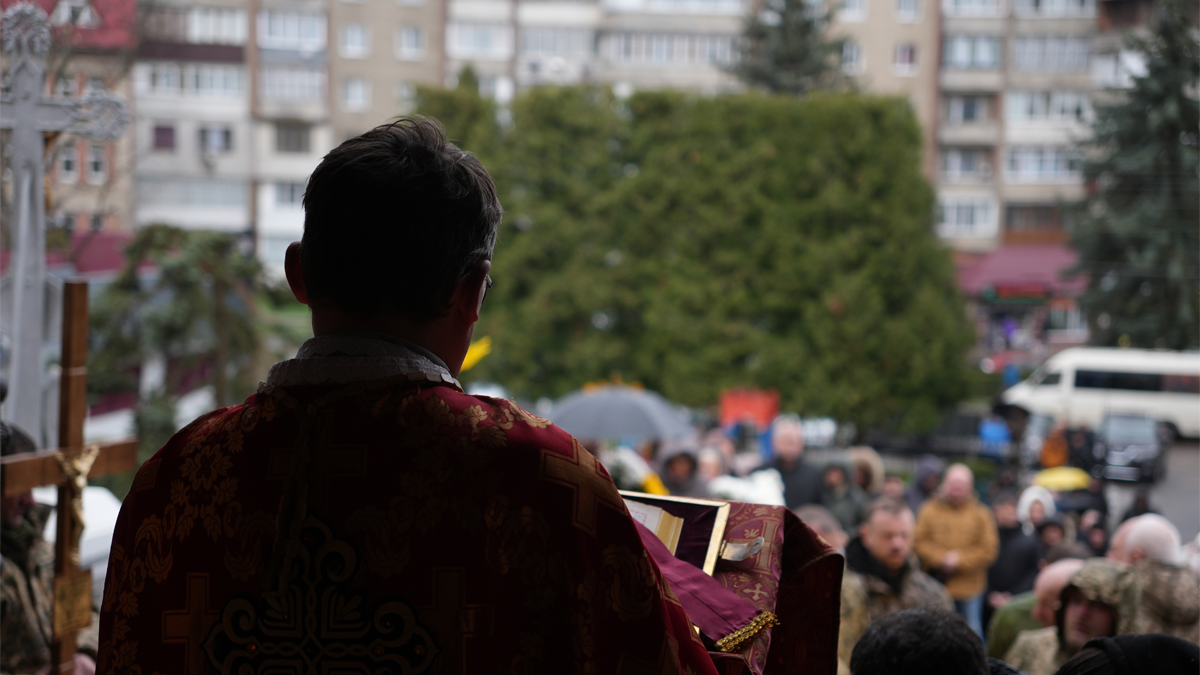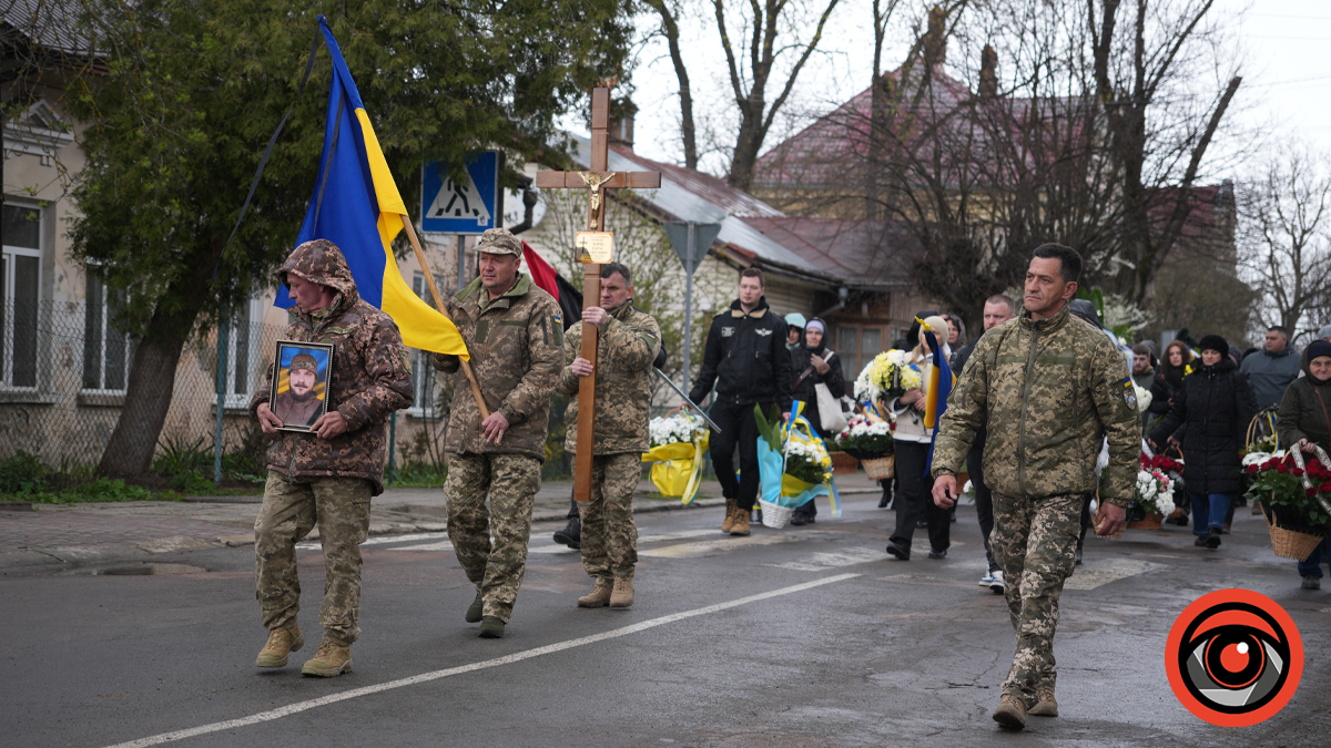 Цього дня небо затягнулося хмарами та падав мокрий дощ з градом, немов плачучи разом із скорботною Калуською громадою, яка віддає останню шану військовослужбовцю, який віддав найцінніше за волю та незалежність України — власне життя.