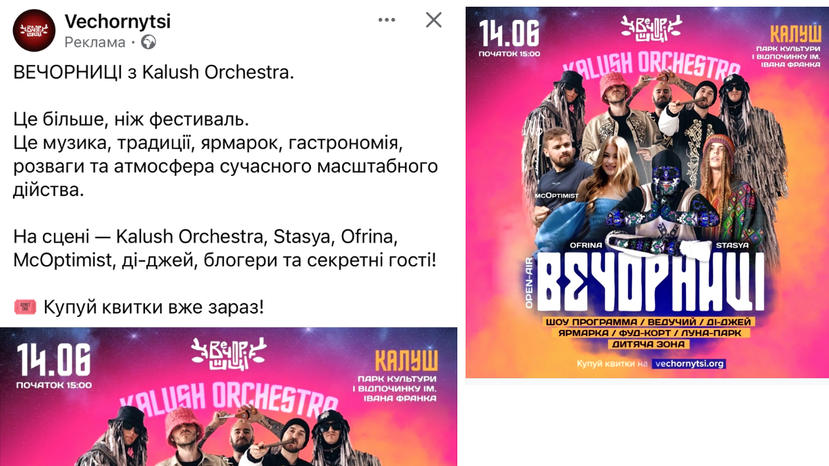 Наразі у соцмережах вже запустили рекламні кампанії для промоції фестивалю. Зокрема, трапилося таке оголошення: