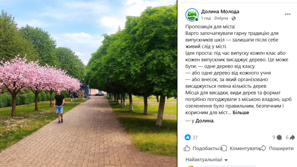Йдеться про ідею висаджувати дерева у місті. Допис про це днями був оприлюднений у спільноті “Долина молода”.