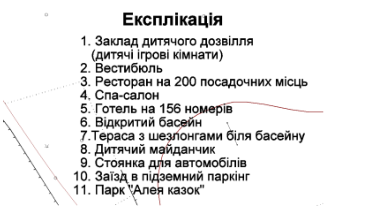 Відповідно до оприлюднених даних, буде йтися про готель на 156 номерів, ресторан на 200 місць та заклад для дитячого дозвілля. На території — відкритий басейн та тераса з шезлонгами. Окремо розташують дитячий ігровий майданчик та підземний паркінг.