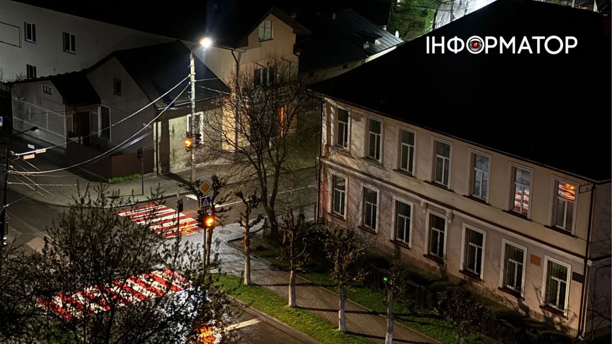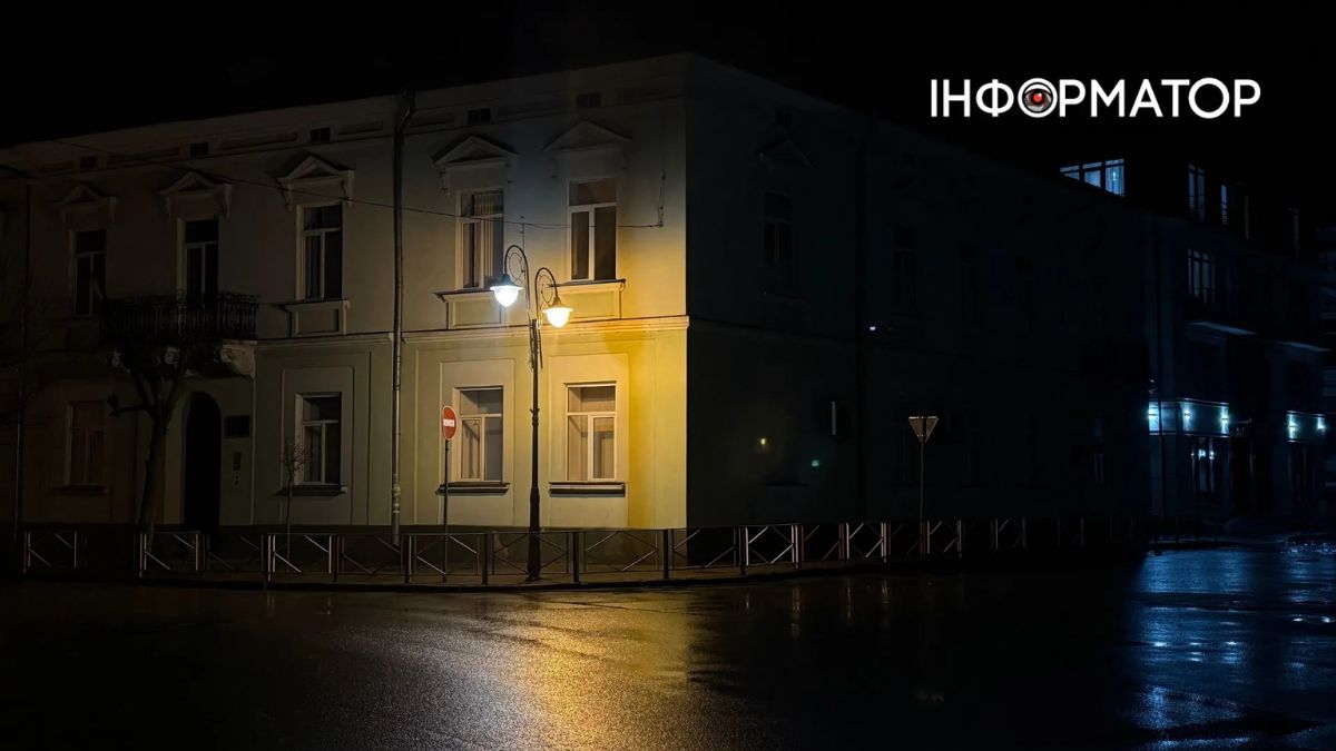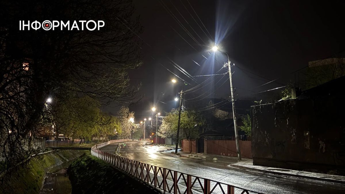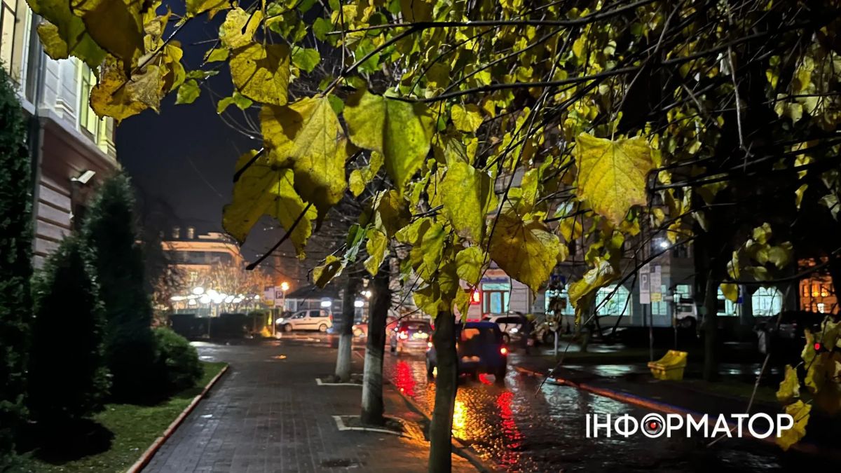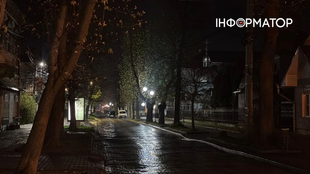 У світлі нічних вуличних ліхтарів архітектура, дерева та дороги міста виглядають особливо атмосферними, додаючи тепла навіть прохолодному вечору.