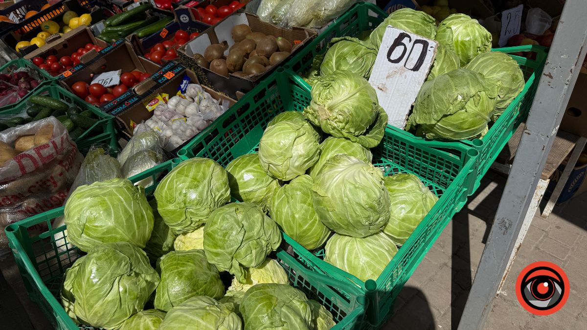На місцевому ринку асортимент ширший — тут можна знайти всі зазначені овочі. У більшості продавців молода капуста коштує близько 60 гривень за кілограм. Ціни на огірки залежать від сорту і коливаються від 70 до 85 гривень за кілограм.